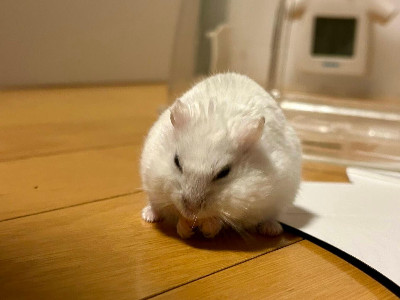ケージ内の模様替えをしたらゴハン皿を見つけるのに時間がかかっていたくっきぃ君です。