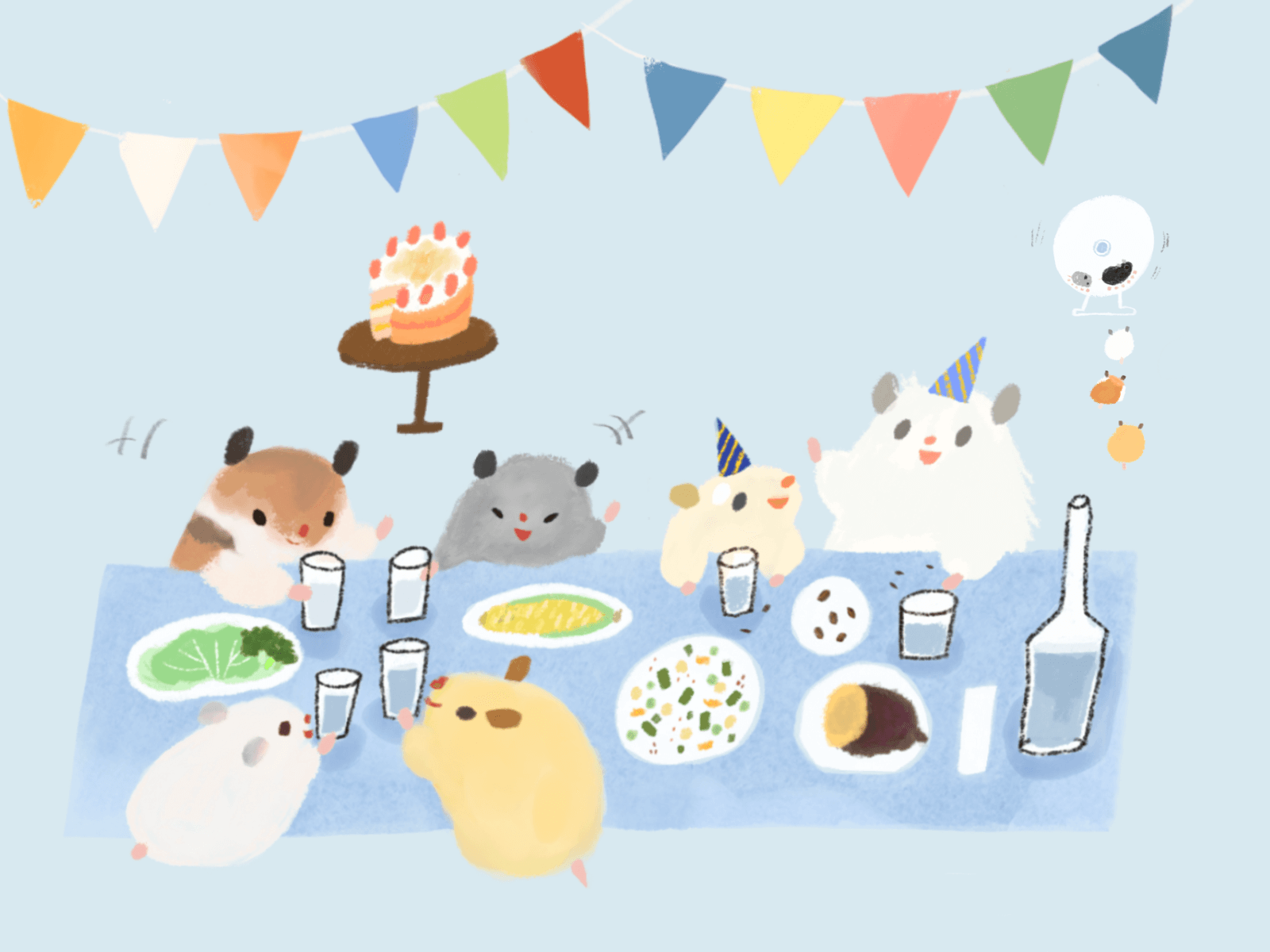 しずくちゃん1歳になりました!病気も怪我もなく元気でいてくれて里親も嬉しいです。 いつも体にいいおやつしかあげてないのですが、誕生日には特別にハム用バームクーヘンにはむはむぴゅーれやドライフルーツをのせたなんちゃってケーキをあげたら喜んでくれたようでした。 体重は相変わらず増えませんが、食欲旺盛で粟玉の袋を振るだけで遠くにいてもダッシュで来ます。
