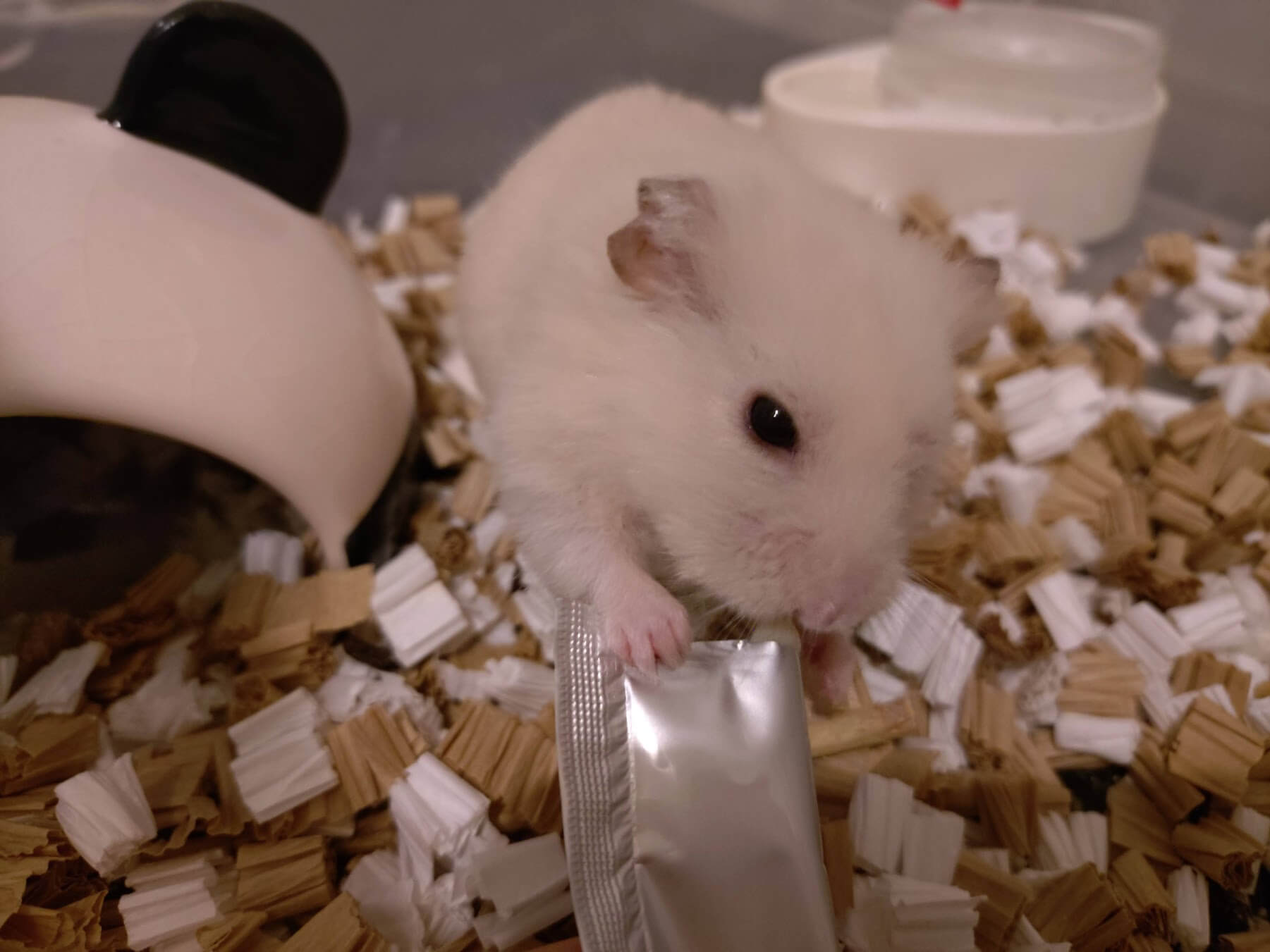 はくあくん、今週も元気に過ごしています🐹白くて、むちむち体型のはくあくん。