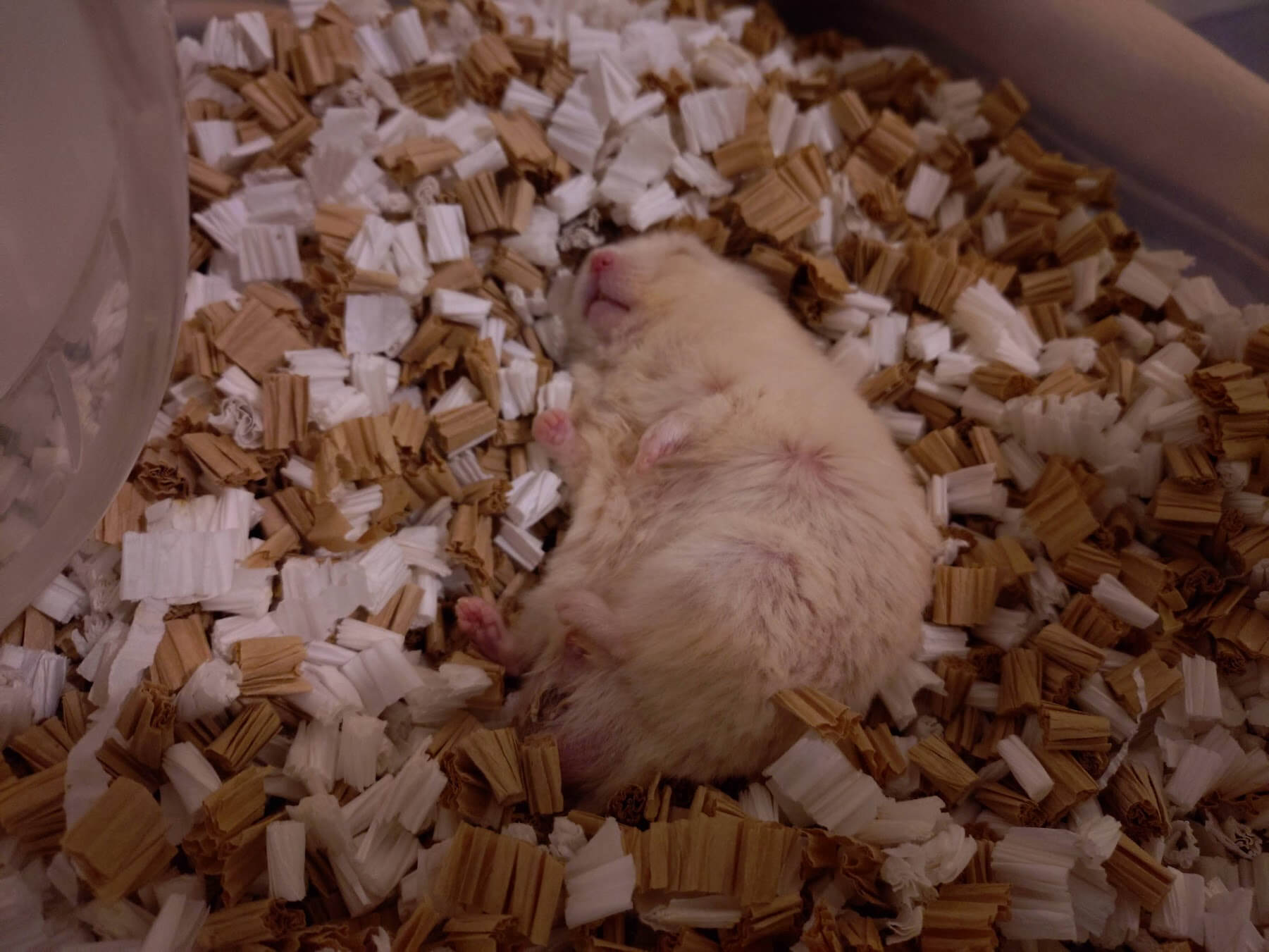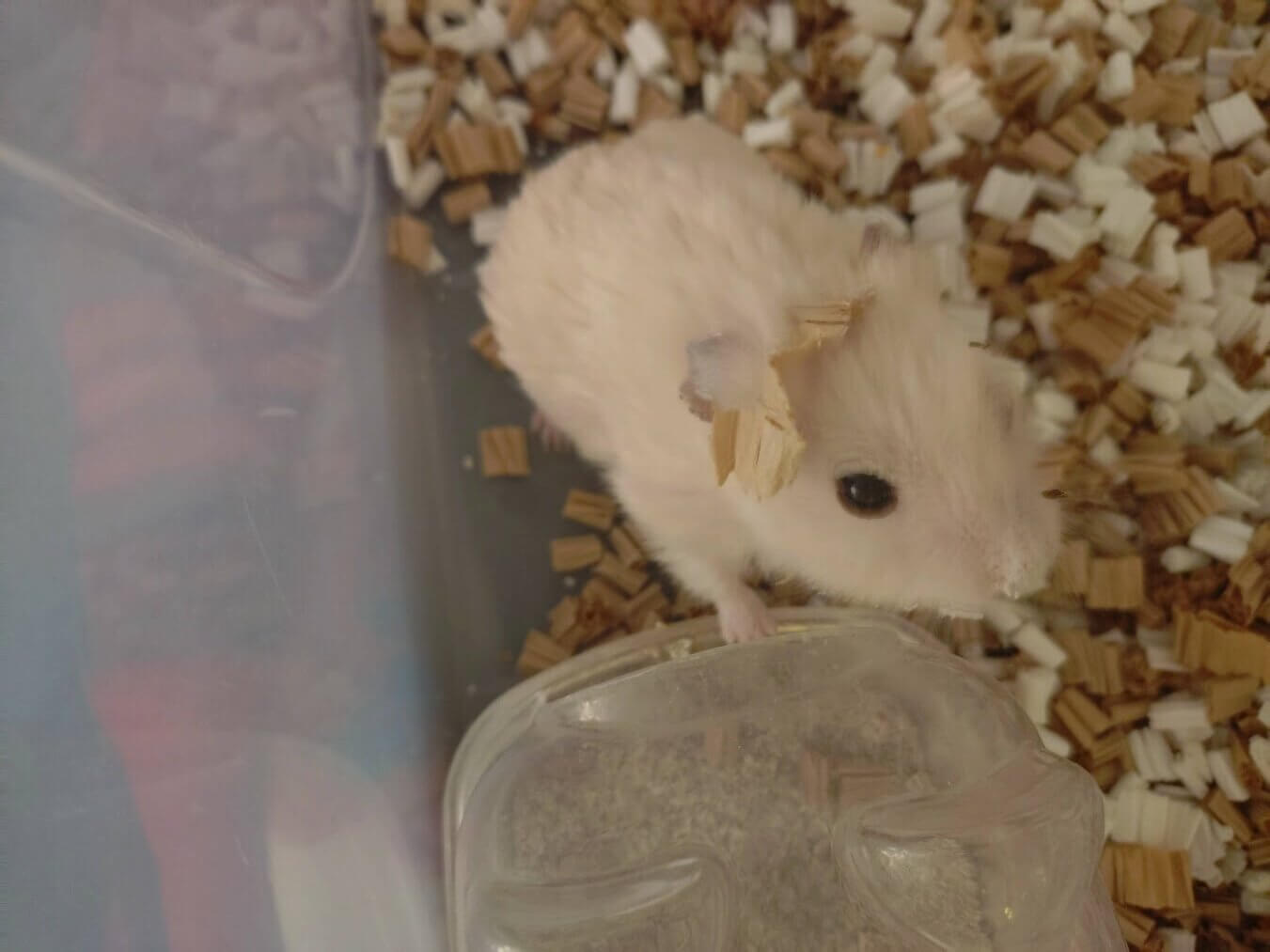 キレイなアイボリー色のハムスターで、毛並みもきれいです。