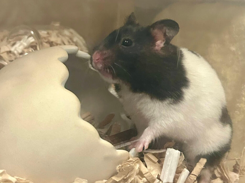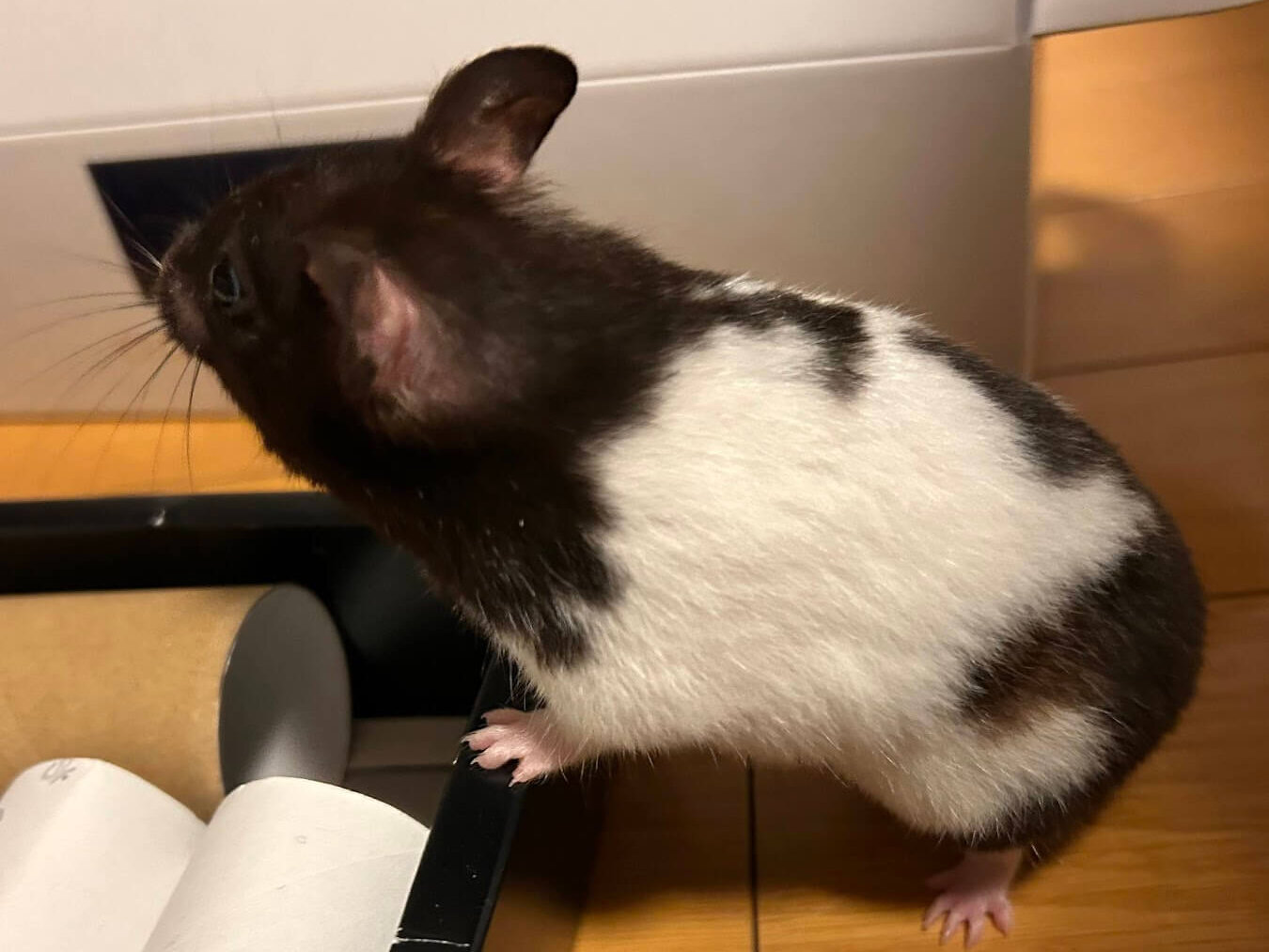 はぁちゃんは必要な分だけゴハン皿に取りにくるスタイルで、持ち帰ることもあればお皿付近で食べていることもあります。その時は食べている途中でゴハン皿周辺にポイ捨てして回し車に戻っているので、お皿が空になると周辺を掘りまくっています。(自分がポイ捨てしたゴハンを探している様です)お皿がひっくり返っているのはそういう理由か!と納得した預かり主です(笑)